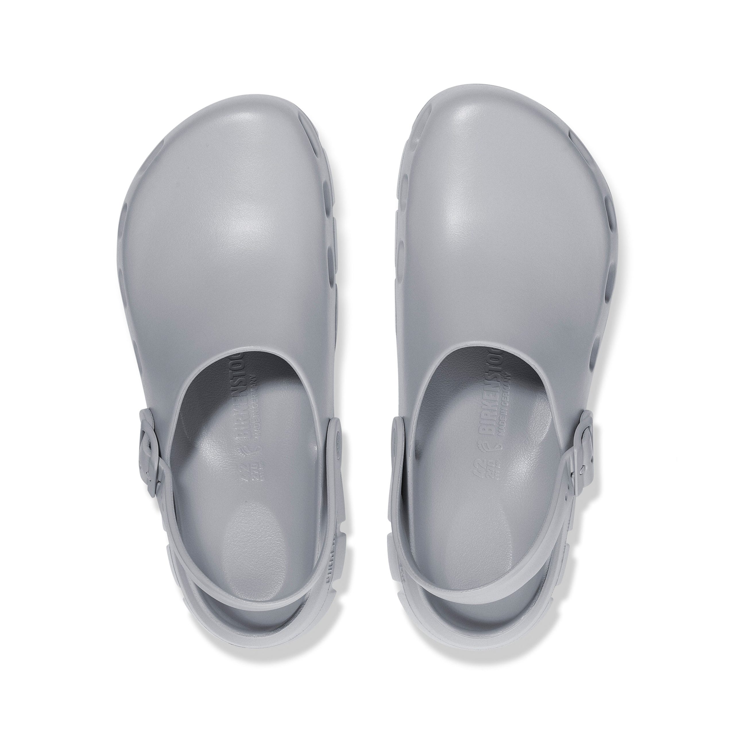 Introducing the all-new Birki Flow. our first post-sport recovery clog. Designed around the contours of our iconic footbed and bestselling Birki clogs. this new lightweight EVA (ethylene vinyl acetate) model is ultra-breathable. highly flexible. odour resistant and water-friendly. This EVA clog provides the support that Birkenstock wearers know and love along with the added comfort of air circulation from strategically placed vents that aid breathability. It is completed with classic Birkenstock design cues. from the adjustable backstrap to the moulded buckle.