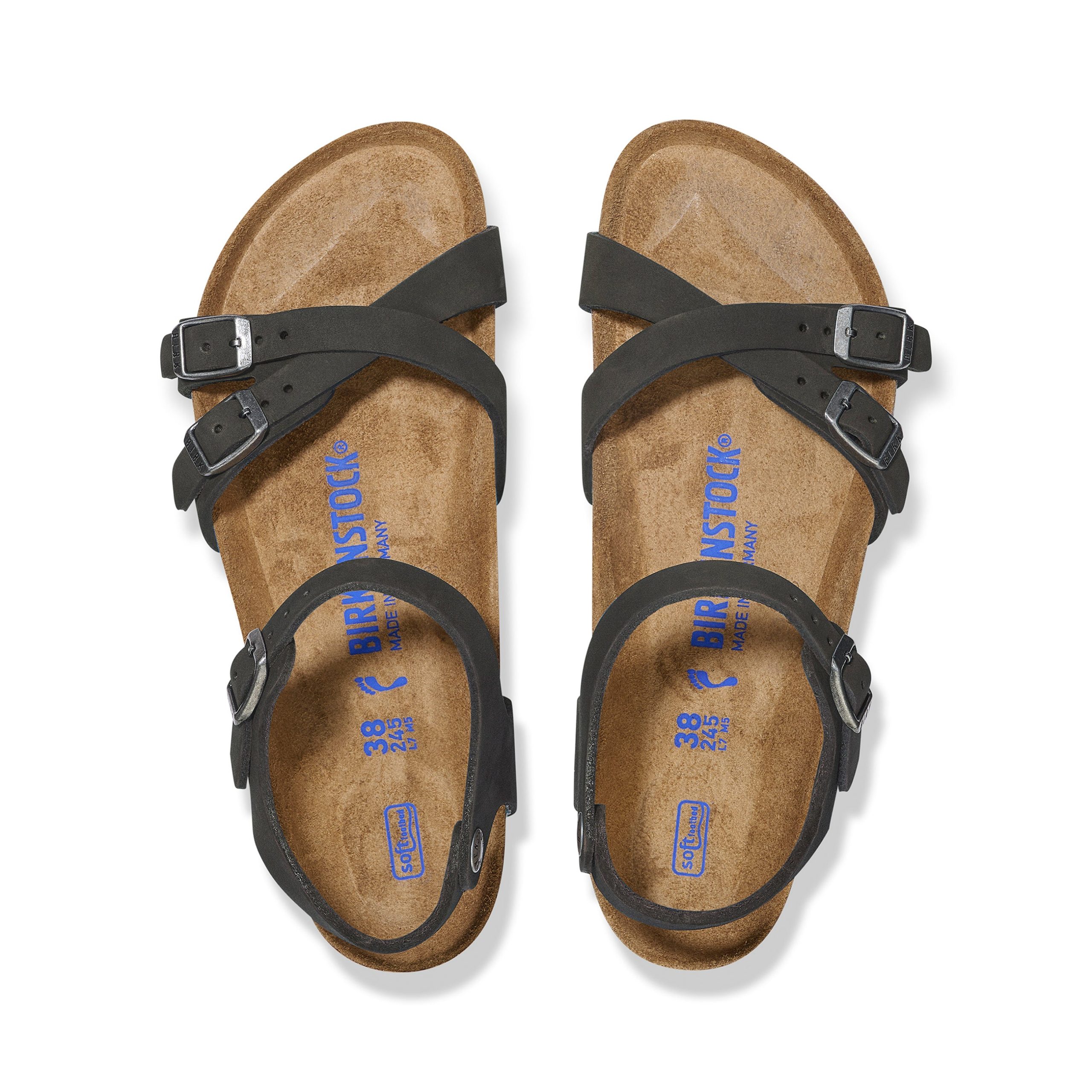 The Birkenstock Kumba is an elegant and timeless sandal with crossed straps and an ankle strap for secure and comfortable grip. It’s just the thing for hot summer days. With its additional foam layer. the soft footbed offers extra comfort and pampers feet all day long. The upper is made from high-quality. extra soft nubuck leather that boasts a natural. rustic appearance.