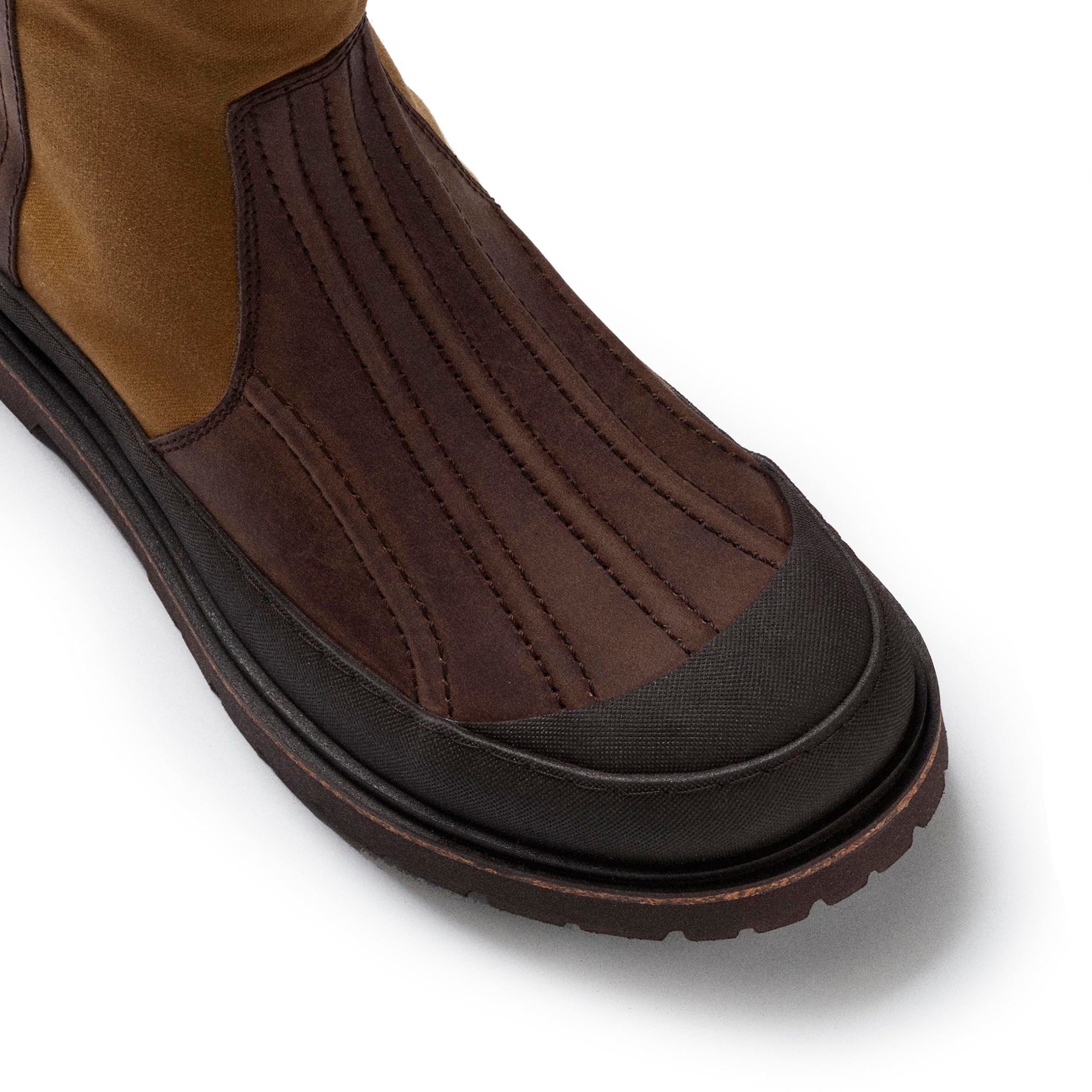 The Skykomish boot is the epitome of rustic utility. Featuring a Filson tin cloth upper and a textured rubber mudguard. this boot is built to withstand the elements. Its rugged design is perfectly suited for both mountain trails and urban streets.