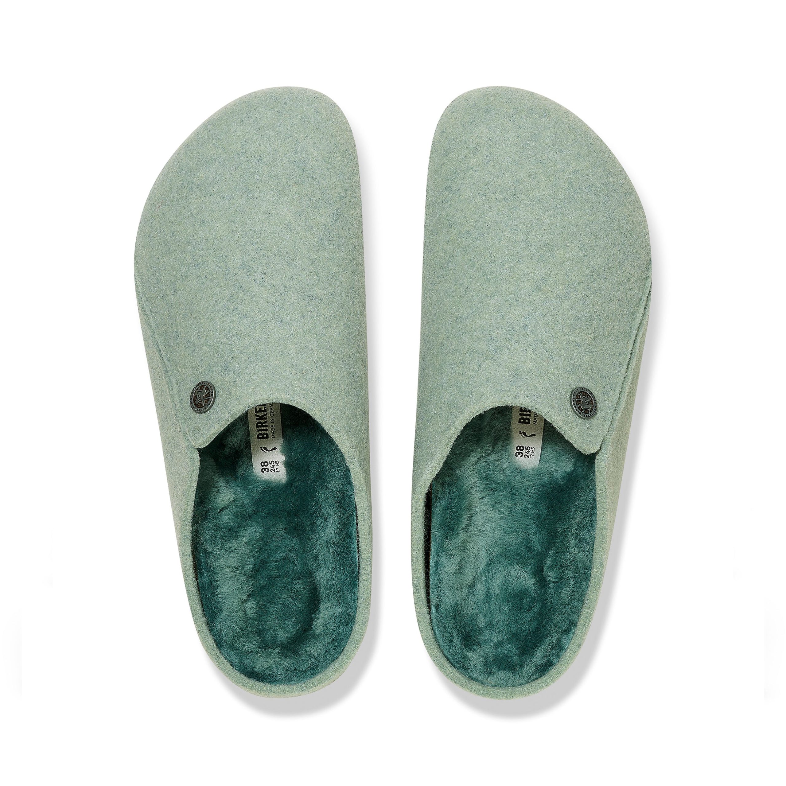 The Birkenstock Zermatt is our first true slipper. This style features our iconic cork latex footbed. and an upper of soft genuine wool to keep you extra cosy.