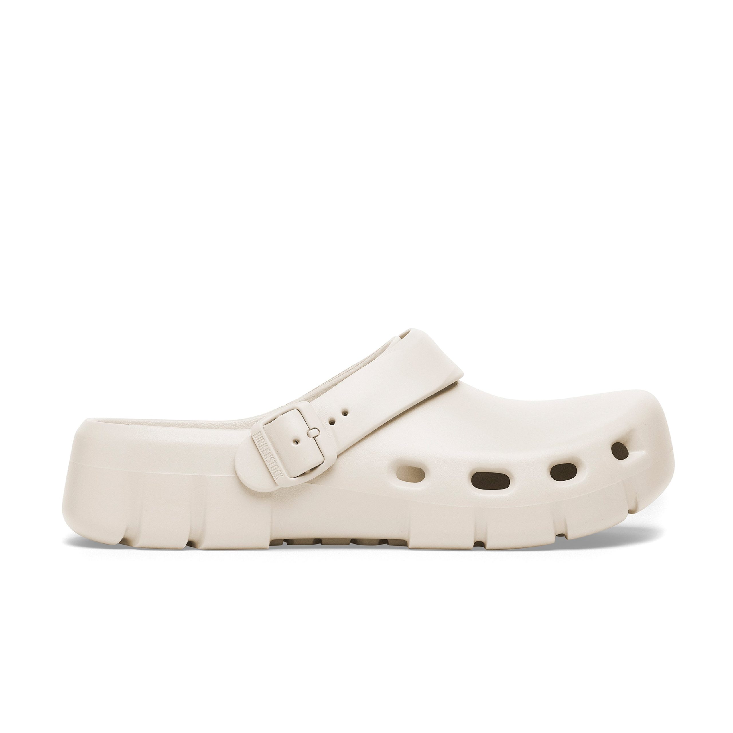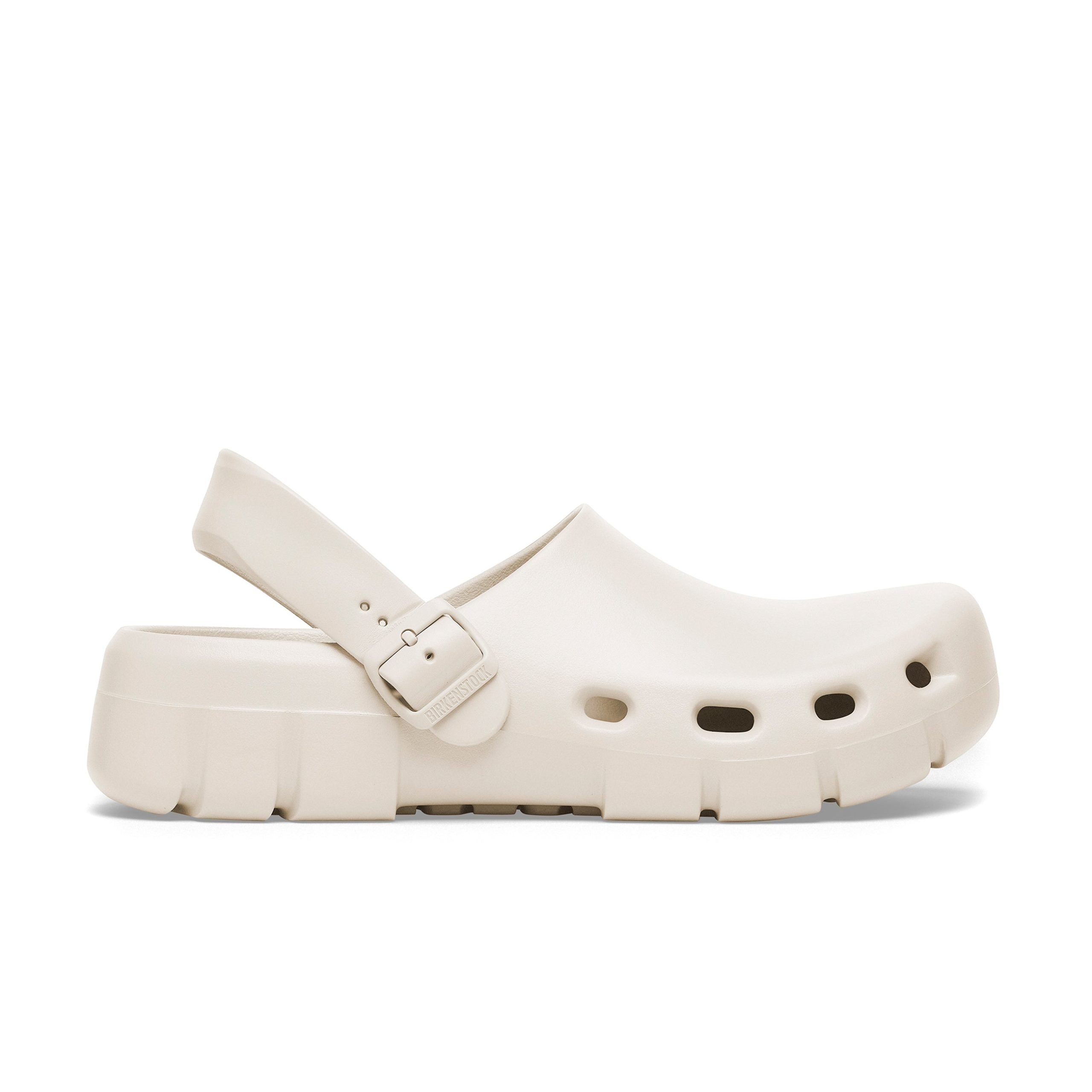 Introducing the all-new Birki Flow. our first post-sport recovery clog.? Designed around the contours of our iconic footbed and bestselling Birki clogs. this new lightweight EVA (ethylene vinyl acetate) model is ultra-breathable. highly flexible. odour resistant and water-friendly. This EVA clog provides the support that Birkenstock wearers know and love along with the added comfort of air circulation from strategically placed vents that aid breathability. ?It is completed with classic Birkenstock design cues. from the adjustable backstrap to the moulded buckle.