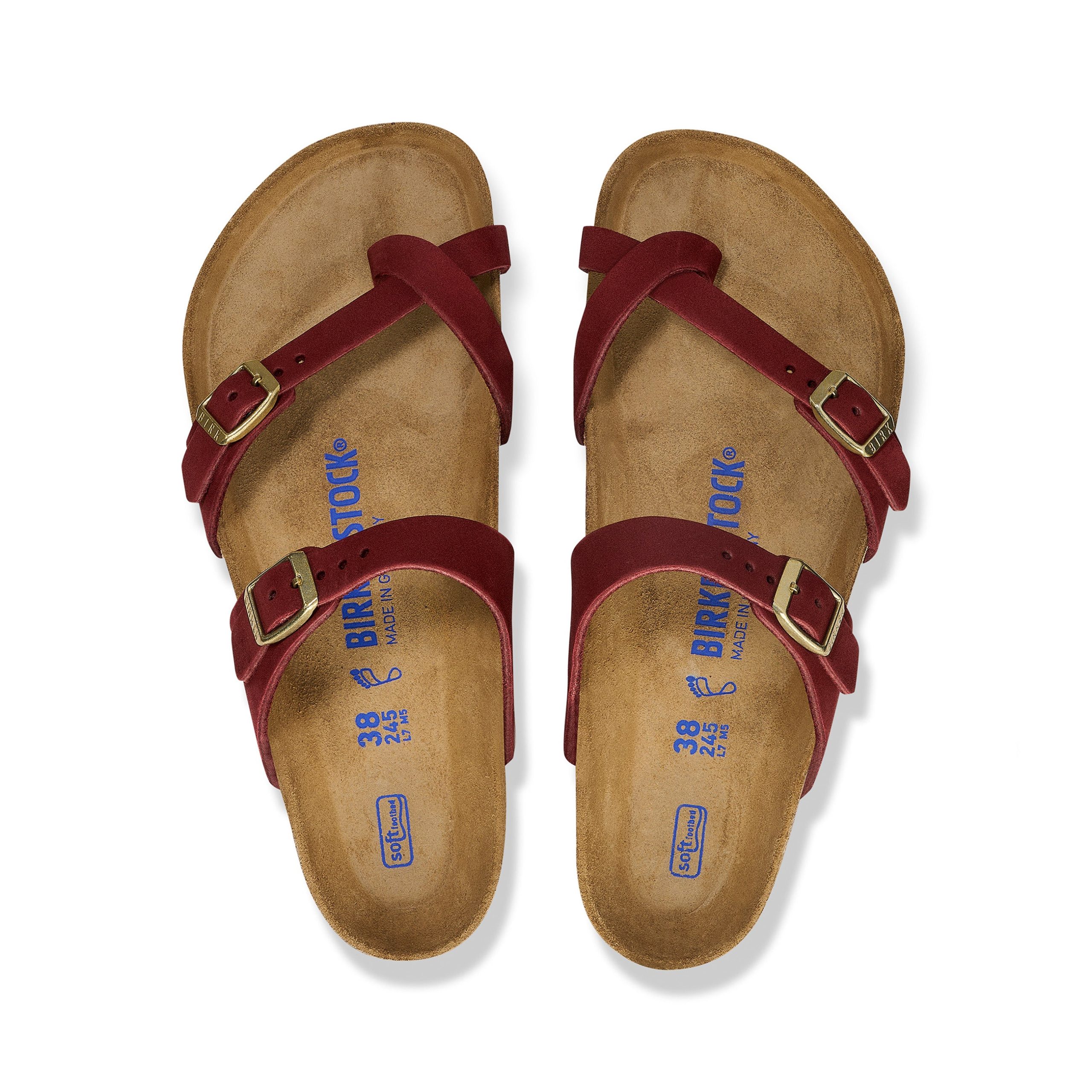 The Birkenstock Mayari thong sandal is a distinctive classic model with a toe loop and criss-cross strap. The combination of an anatomically shaped footbed and secure adjustable instep strap makes Mayari extremely wearable in a wide range of situations. The Mayari sandal’s nubuck leather upper feels as smooth as it looks. with a subtle grain that adds to the style. Featuring an extra layer of cushioning. its soft footbed keeps you comfortable and supported.